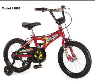 The recall includes bicycles having date codes of April 2000 and earlier. The date code is molded on the bicycles' left rear frame, at the point of attachment of the rear wheel. The model name is written on the bike's frame. The following models are involved: "Cool Taz", 12-inch boy's style "Sweet Tweety", 12-inch girl's style "Mudslinger", 16-inch boy's style "Secret Treasures", 16-inch girl's style "Rugrats", 16-inch boy's style "Best Friends", 16-inch girl's style "Space Racer", 12-inch boy's style "Fairy Magic", 12-inch girl's style "MX1200", 12-inch boy's style "High Gear", 12-inch boy's style "MX 1800", 16-inch boy's style