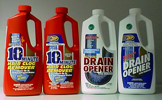 The following chart provides information concerning the four types of drain cleaners involved in this recall. Only 64-oz. bottles are affected. Brand Name Cleaning Product UPC Code Recall Hotline Number, Website Address, E-mail Address Zep Commercial 10 Minute Hair Clog Remover 21709-52206 (888) 805-4357 9 a.m. to 5 p.m. ET Monday through Friday www.zepcommercial.com zephelp@zepcommercial.com Drain Care Professional Strength Drain Opener Clog Remover 21709-60060 Enforcer 10 Minute Hair Clog Remover 21709-52206 (800) 241-5656 Ext. 686 9 a.m. to 5 p.m. ET Monday through Friday www.enforcer.com plumbing@enforcer.com Drain Care Professional Strength Drain Opener Clog Remover 21709-52212 The Drain Opener Clog Remover bottles and caps are white and the Hair Clog Remover bottles and caps are red. Each bottle has the brand name - "Zep Commercial" or "Enforcer" - on a label that also reads, in part, "Keep all chemicals out of reach of children."